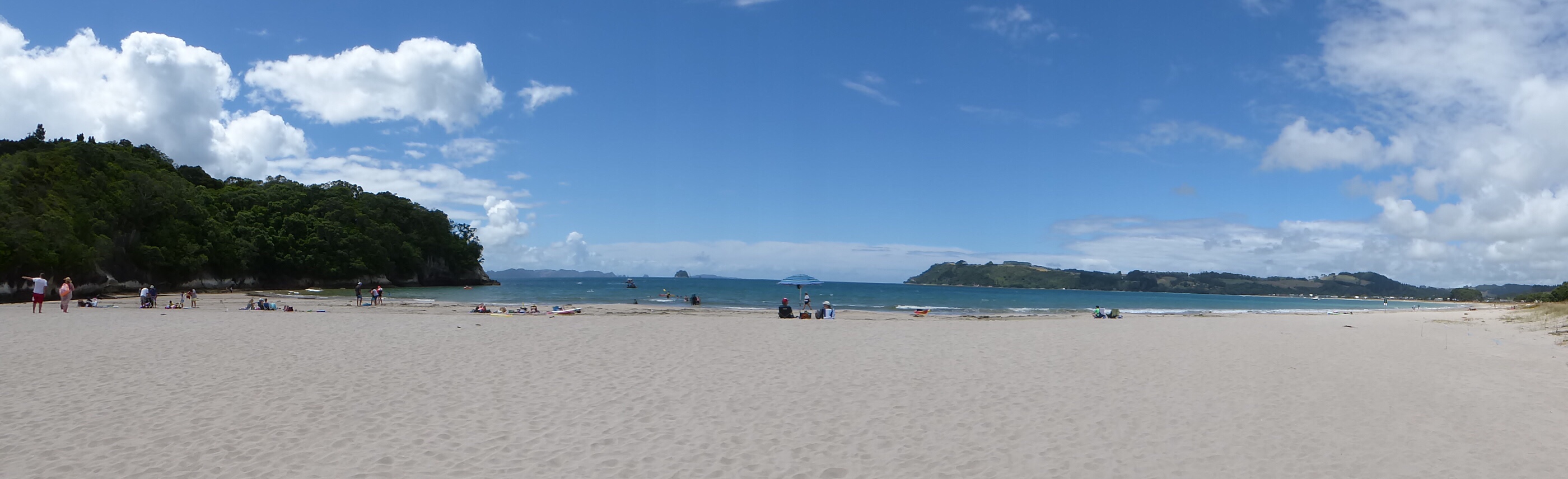 After a late breakfast we had the worlds shortest ferry ride, less than 200 meters, across Mercury Bay to an area shown only by the name Ferry Landing, to explore the beaches and marine areas. Got some sun, sand and surf. Back across the ferry and home in time for cleaning up for dinner. A lovely way to spend a day.